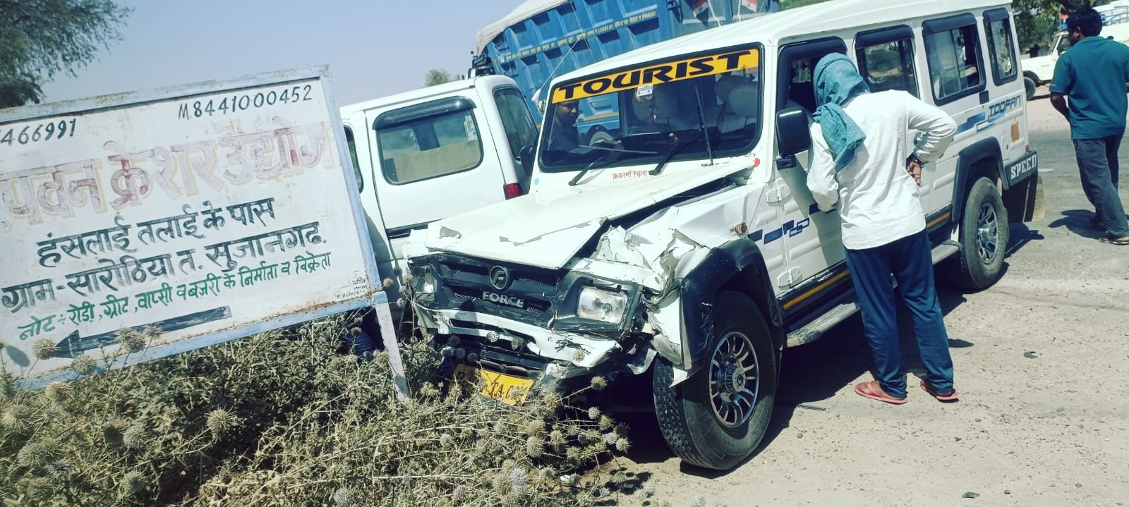 सुजानगढ़ (नवयत्न) । हनुमानगढ़ किशनगढ़ मेगा हाईवे स्थित गनोडा चैराहा पर स्कूल गाड़ी और इको की टक्कर मे कुल 6 लोगों को चोटें लगी। टीम हारे का सहारा संयोजक श्याम स्वर्णकार को मिली सूचना पर एम्बुलेंस चालक भरत मौके पर पहुंचे तथा घायलों को एम्बुलेंस और निजी गाड़ी से सुजानगढ़ अस्पताल लाकर इमरजेंसी मे भर्ती कराकर इलाज शुरू कराया।. घायलों में डूंगरमल नलिया बास जिया -छापर, निखिल चाडवास, शिवम, रौनक, नंदिनी, कृतिका निवासीगण छापर के नाम शामिल हैं। सूचना पर कोतवाली पुलिस सुजानगढ़ भी मौके और अस्पताल पहुंची। डूंगरमल को हायर सेंटर रैफर किया गया है।