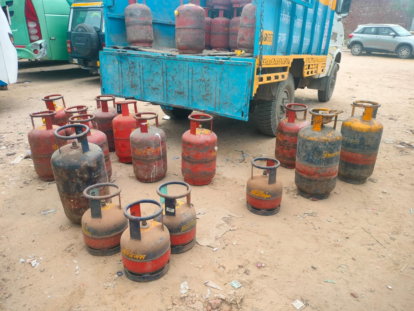 अवैध गैस रिफिलिंग पर कार्रवाई करते हुए किए 83 सिलेंडर व पिकअप जब्त