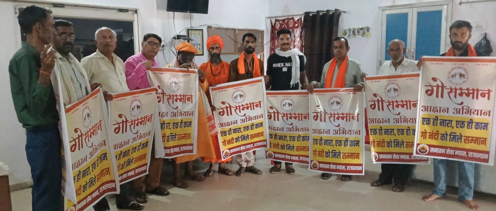 रतनगढ़ (नवयत्न) । रतनगढ़ में योगी अखबारी नाथ व योगी हर्षनाथ के सानिध्य में सनातन सेवा न्यास द्वारा गौ-सम्मान अभियान के तहत पोस्टर विमोचन किया गया। कार्यक्रम में 27 अप्रैल को प्रशासन को दिए जाने वाले ज्ञापन की तैयारियों पर चर्चा करते हुए अभियान को तेज करने का आह्वान किया गया, साथ ही जानकारी दी गई कि 22 अप्रैल तक हस्ताक्षर अभियान लगातार जारी रहेगा, ताकि अधिक से अधिक जनसमर्थन जुटाया जा सके। इस अवसर पर प्रदेश प्रभारी विनोद प्रजापति, जिला प्रमुख विजय नायक, यूथ नगर अध्यक्ष सुमित बजरंगी, बजरंग लोहानीवाल, उमाशंकर शर्मा नगर उपाध्यक्ष, गोविंद प्रसाद खटोड़, सुरेश कुमार व कृष कुमार सहित अन्य कार्यकर्ता उपस्थित रहे।