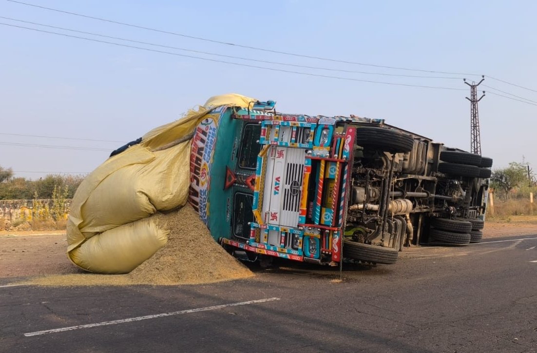 नेशनल हाईवे पर ट्रक पलटने से हादसा