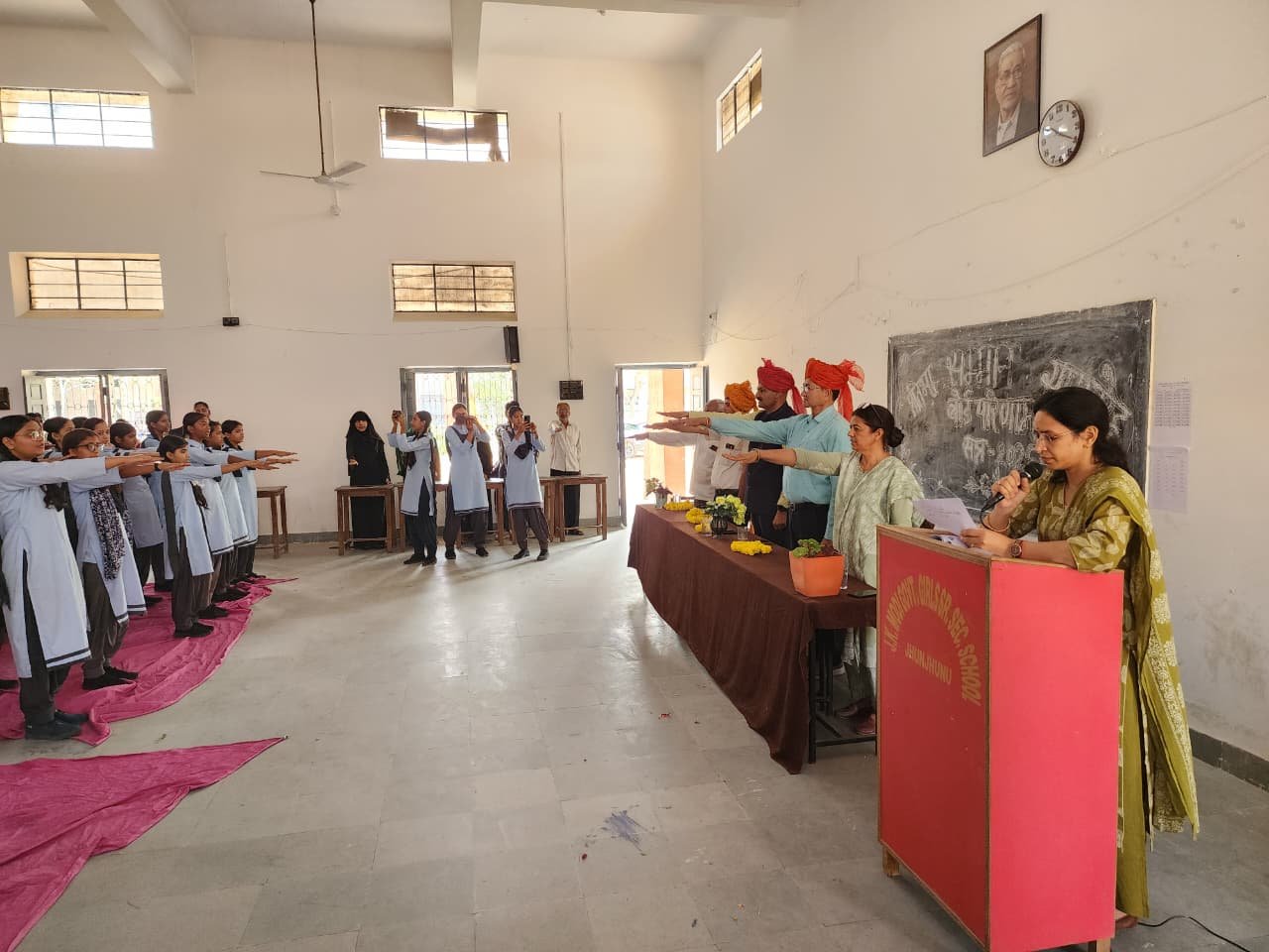 कार्यक्रम में मुख्य अतिथि के रूप में जिला उपभोक्ता विवाद प्रतितोष आयोग झुंझुनूं के अध्यक्ष मनोज कुमार मील उपस्थित रहे, जबकि अध्यक्षता मुख्य जिला शिक्षा अधिकारी अशोक कुमार शर्मा ने की। बतौर विशिष्ट अतिथि शिक्षा विभाग के सहायक निदेशक अशोक जांगिड़, विद्यालय की प्राचार्य सुलोचना बुडानिया तथा एसडीएमसी सदस्य यूनुस खान मौजूद रहे।
