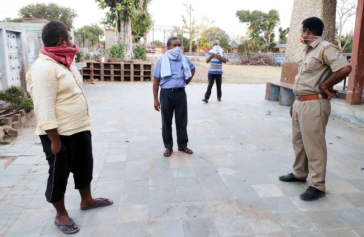 खेतड़ी नगर,(विपुल पारीक)22 मई। खेतड़ी उपखंड में गुरूवार को पांच कोरोना पॉजिटिव मिलने के बाद प्रशासन व पुलिस ने सख्ती दिखाते हुए बगैर मास्क व बिना किसी काम से बाहर घुमने वालों को घर भेजा। पुलिस जवानों ने मुख्य बाजार, सड़को एवं धार्मिक स्थल पर बिना मास्क व बिना किसी काम के घुमने वालों पर सख्ती दिखाई। सुरक्षा गार्ड हरप्रीतसिंह ने बताया कि कई दिनों से सूचना मल रही थी कि सनातन धर्म मंदिर परिसर में बगैर किसी काम के वहां पर जमा होते है। सूचना पर मौके पर पहुंचकर देखा तो मंदिर परिसर में स्थित स्टेज पर बिना सोशल डिस्टेंश के बैठे हुए थे व कई लोग बाहर घुम रहे थे। उक्त लोगों को शाम सात बजे बाद घरों में रहने के लिए पाबंद किया।