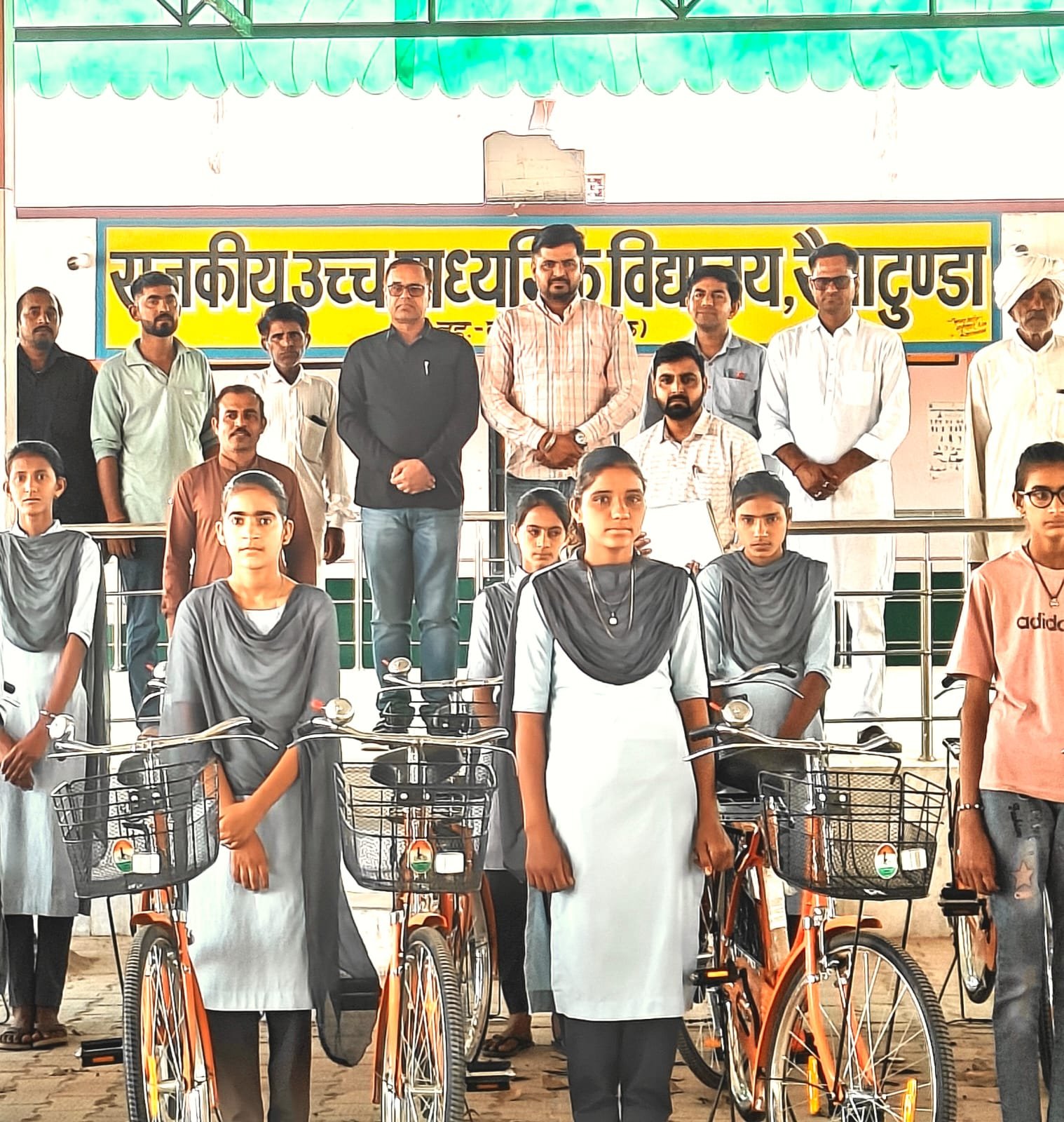तारानगर (नवयत्न)। राउमावि रैयाटुण्डा में साइकिल वितरण समारोह का आयोजन किया गया। समारोह में 30 छात्राओं को साइकिल प्रदान की गई। साइकिल पाकर छात्राओं के चेहरे खिल उठे। कक्षा 5,8 और 10 के उत्कृष्ट परिणामों पर छात्र-छात्राओं, शिक्षकों और अभिभावकों ने खुशी जाहिर की। बैठक में परिणामों की समीक्षा और नामांकन वृद्धि के लक्ष्यों पर विस्तार से चर्चा की गई।