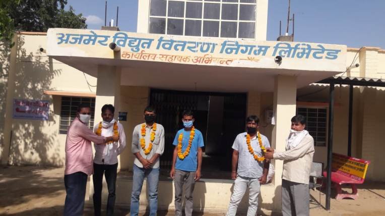 भाजपा परिवार के सदस्यों बजरंगलाल, राकेश कुमार मिश्रा, दिलीप सैन, मुकेश कुमार, सुवालाल, महेन्द्र सिंह, मोनू शर्मा, विनोद कुमार, रंगलाल स्वामी मंडल अध्यक्ष, संतोष यादव पूर्व मंडल अध्यक्ष, प्रकाश चन्द मुण्ड सहित कई कार्यकर्ताओं ने विभाग के विनोद कुमार कनिष्ठ अभियंता, पुरणमल कुमावत लेखाधिकारी, पवन शर्मा सहित सभी कार्मिकों का माला पहनाकर स्वागत किया गया व यौद्धाओं जैसे कार्य करने की सराहना की गई।