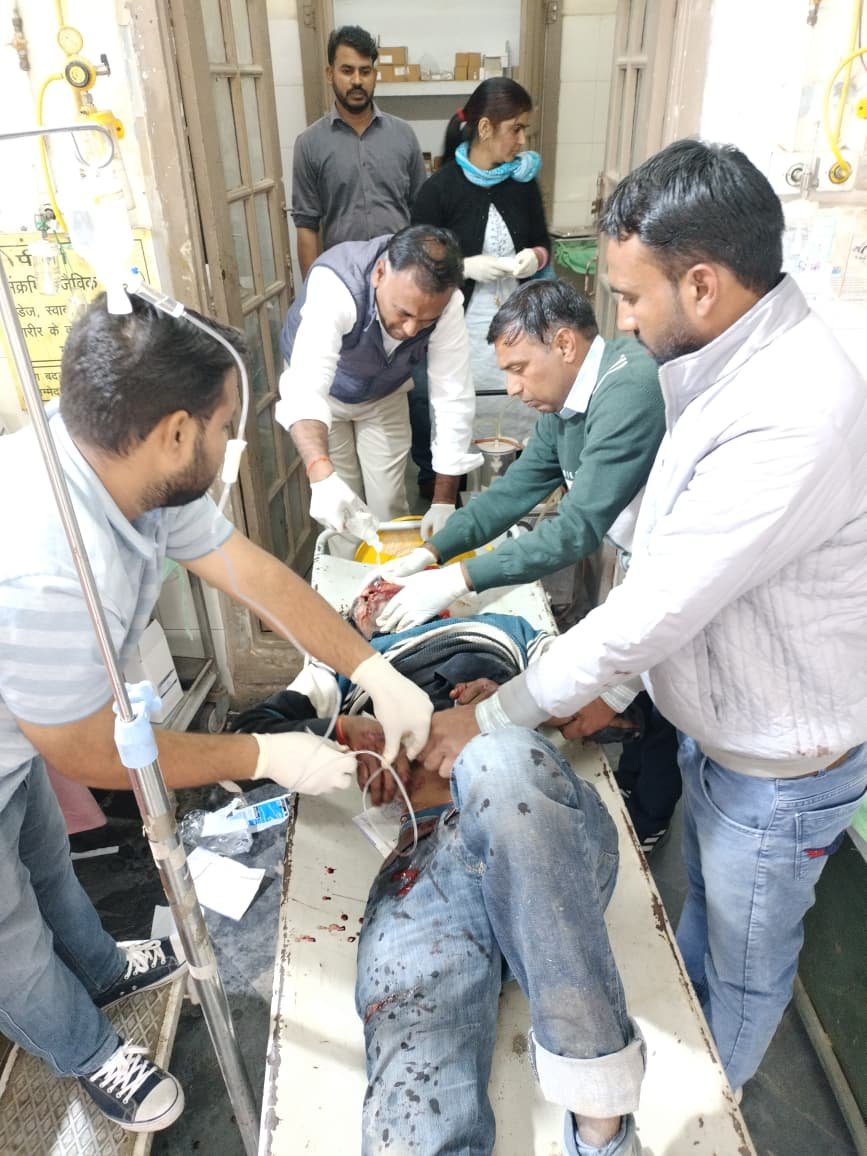 खेतड़ी (दैनिक नवयत्न ) । थाना क्षेत्र के खरखड़ा के पास शनिवार दोपहर को बाइक व गाड़ी की भिड़ंत हो गई। इस दौरान हादसे में बाइक सवार गंभीर रूप से घायल हो गया, जिसे उपचार के लिए झुंझुनूं रैफर किया गया है। परिवहन निरीक्षक रमेश यादव ने बताया कि वह विभाग की बैठक में भाग लेने के लिए सीकर जा रहे थे। इस दौरान जब खरखड़ा के पास पंहुचे तो एक बाइक सवार किसी अज्ञात गाड़ी की टक्कर लगने से घायल अवस्था में पड़ा हुआ था। इस दौरान उन्होंने सड़क पर घायल बाइक सवार को देखकर मानवता के नाते उन्होंने अपनी गाड़ी में घायल को बैठाया तथा खेतड़ी के राजकीय उप जिला अस्पताल में पहुंचाया। इस दौरान डॉक्टरों ने उसका प्राथमिक उपचार किया गया, लेकिन उसकी हालत गंभीर होने पर उसे झुंझुनूं रैफर कर दिया। घटना की सूचना पर खेतड़ी पुलिस मौके पर पहुंची तथा घायल के बारे में जानकारी जुटाई। इस दौरान उसकी बाइक के नंबर से जानकारी जुटाई तो उसकी पहचान दनचौली नारनौल निवासी आशीष पुत्र पवन योगी के रूप में हुई। इस दौरान घटना की जानकारी परिजनों को दी गई। ग्रामीणों ने बताया कि खरखड़ा रोड़ पर पूर्व में भी कई हादसे हो चुके हैं। इसके बावजूद भी पीडब्ल्यूडी विभाग द्वारा हादसों को रोकने के लिए खतरनाक मोड़ पर संकेतक बोर्ड नहीं लगाए जा रहे हैं। एचसी सुगन सिंह ने बताया कि हादसे की सूचना पर खेतड़ीनगर पुलिस को मौके पर भेजा गया है। परिजनों को घटना की सूचना दी गई है। हालत गंभीर होने पर उसे उपचार के लिए झुंझुनूं भिजवाया गया है। गाड़ी के बारे में जानकारी जुटाई जा रही है। रिपोर्ट आने पर मामला दर्ज कर आवश्यक कार्रवाई की जाएगी।