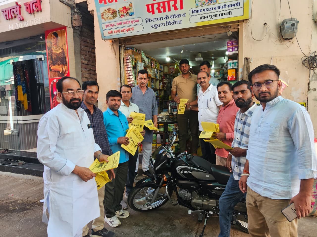 भाजपा कार्यकर्ताओं ने कस्बे में जनसंपर्क कर जनसभा में चलने का दिया न्यौता