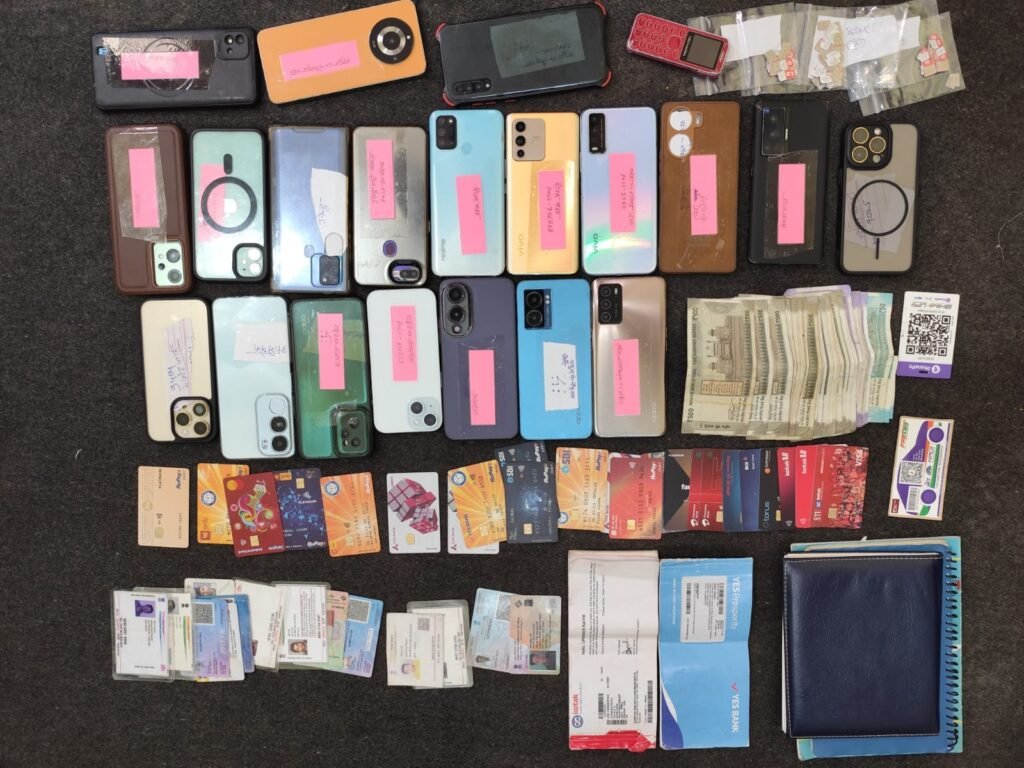 पुलिस ने आरोपियों के कब्जे से भारी मात्रा में साइबर ठगी के उपकरण 21 मोबाइल फोन और 75 सिम कार्ड, 23 एटीएम/डेबिट कार्ड, 2 चेक ,आधार कार्ड, पैन कार्ड, डीएल, आरसी और तीन नोटबुक ,दो कारें, एक मोटरसाइकिल और नकद राशि बरामद की है। पुलिस अब ठगी में इस्तेमाल किए गए बैंक खातों की जानकारी जुटा रही है।