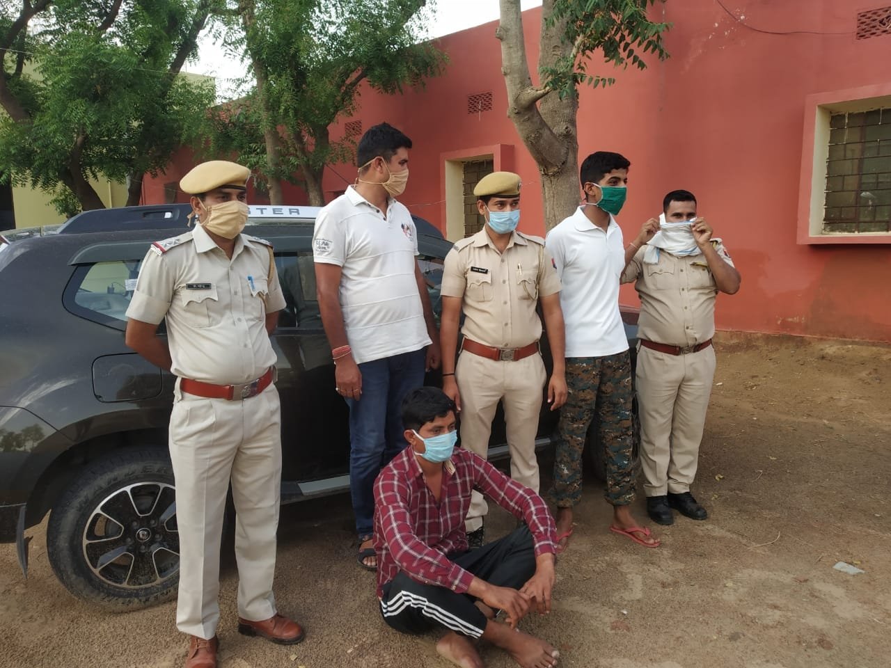सालासर,(दिनेश स्वामी)6 मई। राज्य व जिला स्तर पर वांछित 10 हजार रूपये का ईनामी हार्डकोर अपराधी व 19 संगीन अपराधों में लिप्त गजेन्द्र सिंह उर्फ गज्जुसिंह देशी पिस्टल के साथ गिरफ्तार। लोकडाउन के दौरान बीकानेर रेन्ज पुलिस महानिरीक्षक जोस मोहन व चूरू पुलिस अधीक्षक तेजस्वनी गौतम के आदेशानुसार वांछित अपराधियों की धरपकड़ अभियान के तहत एडीशनल एसपी सीताराम माहिच व नरेन्द्र कुमार उप पुलिस अधीक्षक सुजानगढ़ के सुपरविजन में सालासर थानाधिकारी डॉ महेन्द्र कुमार सैन मय टीम गठित की गई। अपराधी की लॉकेशन नोखा, बीकानेर, नागौर, डेगाना, फलौदी होना पाया। बीकानेर व नागौर बॉर्डर पर अपराधी होने की सूचना पर दुधवाखारा थानाधिकारी रामविलाश विश्नोई व अमित कुमार डीएसटी टीम पहुंचे। सूचना मिली की अपराधी अपनी गाड़ी से अपनी बुआ के पास मलसीसर जा रहा है व उसके पास हथियार भी है। बुधवार सुबह बडाबर व मलसीसर सडक़ मार्ग पर नाकाबंदी कर दी गई जहां दोपहर करीब 1 बजे डस्टर गाड़ी में अपराधी आ रहा था। पुलिस को देखकर गाड़ी वापस घुमाने की कोशिश की व पर्याप्त मात्रा में पुलिस जाब्ते को देखकर खेतों में भागने की कोशिश करने लगा। जिस पर उसकी पहचान की गई तो अपराधी को पुलिस ने सरेन्डर करने व फायर करने की चेतावनी दी तो अपराधी ने पुलिस को सरेन्डर कर दिया।