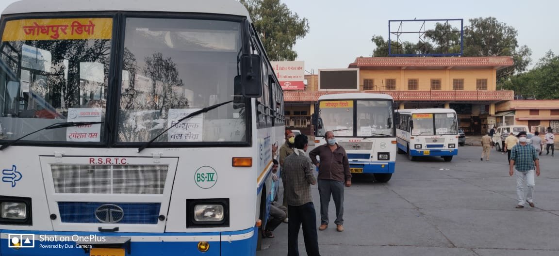 जोधपुर जिला प्रभारी कोविड-19 महावीर सिंह जोधा एवं रोडवेज के मुख्य प्रबंधक बी आर बेडा व्यवस्थाओं के लिए बस स्टेण्ड पर उपस्थित थे।