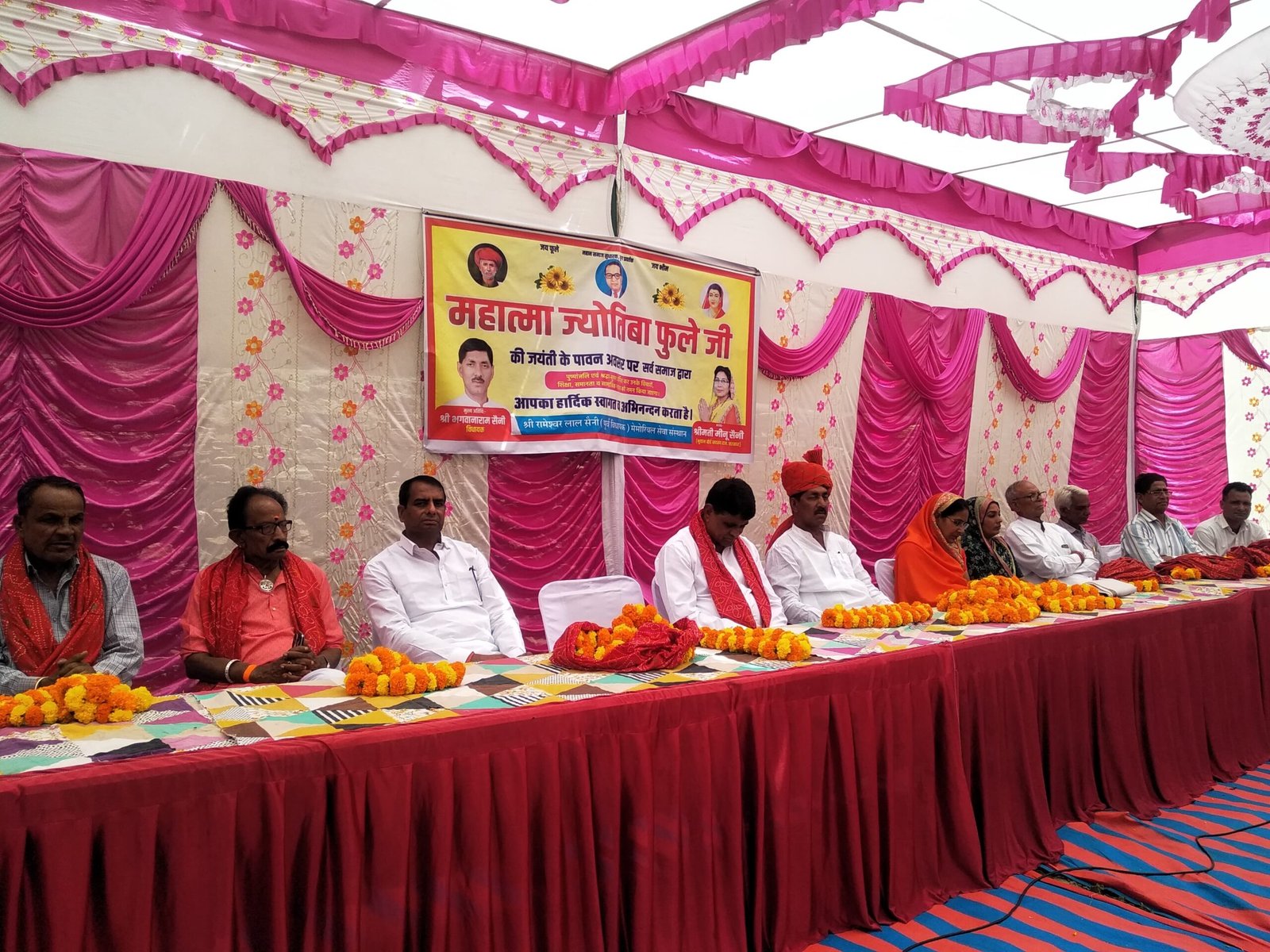उदयपुरवाटी (नवयत्न)। कस्बे में घूम चक्कर के पास स्थिति सैनी मंदिर में महात्मा ज्योतिबा फुले की 199वीं जयंती धूमधाम से मनाई गई। विधायक भगवान राम सैनी के मुख्य आतिथ्य में आयोजित इस कार्यक्रम में सामाजिक कुरीतियों को दूर करने, विवाह एवं सामाजिक कार्यक्रमों में अनावश्यक खर्चों को कम करने, बच्चों की शिक्षा पर जोर देने तथा सामाजिक समरसता बनाये रखने पर बल दिया गया। कार्यक्रम की अध्यक्षता सैनी समाज अध्यक्ष केदारमल सैनी ने की। इस अवसर पर मंदिर कमेटी अध्यक्ष बीरबल सैनी, सैनी समाज के पूर्व अध्यक्ष विनय कुमार सैनी, सेवानिवृत उपनिदेशक रामकरण सैनी, महामंत्री बनवारी लाल सैनी, एडवोकेट श्रवण कुमार सैनी, कांग्रेस ब्लॉक कांग्रेस अध्यक्ष बीएल सैनी, डॉ अशोक कुमार सैनी, पूर्व चेयरमैन प्रतिनिधि विश्वेश्वर लाल सैनी, पार्षद शिव प्रसाद चेजारा, शिक्षाविद् सहदेव सैनी, सेवानिवृत प्रधानाचार्य भागमल सैनी मदनलाल सैनी से०नि०एस आई, डॉक्टर अशोक कुमार सैनी, राधेश्याम रचयिता, पवन कुमार शाह, नेहरू वाल्मीकि बाबूलाल सैनी गिरधरपुरा, सेवानिवृत्त कंपाउंडर महेश कुमार सैनी, किसान नेता धनाराम सैनी, बागोरा सरपंच प्रतिनिधि रमेश सैनी, सेवानिवृत्ति प्रधानाध्यापक सीताराम सैनी,किसान नेता धनाराम सैनी, राकेश सैनी,नेहरू वाल्मीकि, डॉ मुकेश बागड़ी, सेवानिवृत्त प्रसार अधिकारी बोदूराम सैनी, सेवानिवृत शिक्षक रामलाल सैनी एडवोकेट प्रभु दयाल सैनी,सुरेश नायक, रामकरण सैनी,मोतीराम सैनी,रमेश असवाल, से०नि० शिक्षक रामलाल सैनी,पूर्व पार्षद जगदीश बागड़ी सहित सैकड़ों लोग उपस्थित रहे । कार्यक्रम का संचालन बनवारी लाल सैनी ने किया ।