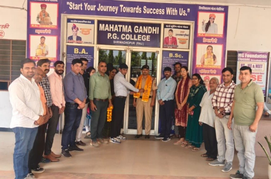 श्रीमाधोपुर (नवयत्न )। महात्मा गाँधी पीजी कॉलेज के भूगोल के सहायक आचार्य सुरेश कुमार सामोता ने एनसीसी (सीनियर डिवीजन) में लेफ्टिनेंट एनसीसी ऑफिसर के रूप में महत्वपूर्ण उपलब्धि हासिल की है। कार्यालय सचिव राकेश शर्मा ने बताया कि सुरेश सामोता ने नागपुर स्थित ऑफिसर ट्रेनिंग एकेडमी, काम्पटी में तीन माह का प्री- कमीशन प्रशिक्षण सफलतापूर्वक पूर्ण किया। प्रशिक्षण पूर्ण होने पर कमांडेंट लेफ्टिनेंट जनरल गुरबीरपाल सिंह, मेजर जनरल उपकार चंद्र एवं डीएस अनुपम चौधरी द्वारा बैज लगाकर लेफ्टिनेंट की उपाधि प्रदान की गई।अनुपम चौधरी ने बताया की यह विश्व का सबसे बड़ा वर्दीधारी युवा संगठन है जिसके देशभर में 15 लाख से अधिक कैडेट हैं।जिसका उद्देश्य युवाओं को अनुशासित, देशभक्त और ज़िम्मेदार नागरिक बनाना है। महाविद्यालय पहुंचने पर संस्था अध्यक्षा श्रीमती पार्वती देवी, प्राचार्य डॉ. वीरेन्द्र यादव, उपप्राचार्य विजेंद्र पूनियां, श्याम सामोता, विज्ञान संकाय प्रभारी प्रमोद कुमार वर्मा, कला संकाय प्रभारी शिवप्रसाद यादव, वाणिज्य संकाय प्रभारी मांगीलाल कुमावत, कार्यालय प्रभारी धर्मपाल बिजारणिया सहित स्टाफ सदस्यों ने उनका माला पहनाकर, साफा बंधवाकर एवं प्रतीक चिन्ह भेंट कर स्वागत किया तथा उनके उज्ज्वल भविष्य की कामना की। इस अवसर पर सहायक आचार्य जितेन्द्र सिंह दायमा, बृजमोहन यादव, कमलेश वर्मा, सुनीता कुड़ी, विक्रम शर्मा, दीपेंद्र वर्मा, ममता यादव, करीना कुमावत, पवन कुमार, जितेन्द्र सामोता, सरिता, डिम्पल शर्मा, अक्षिका मिश्रा, सुमन,शशिकला पालावत सहित महाविद्यालय का समस्त स्टाफ उपस्थित रहा।