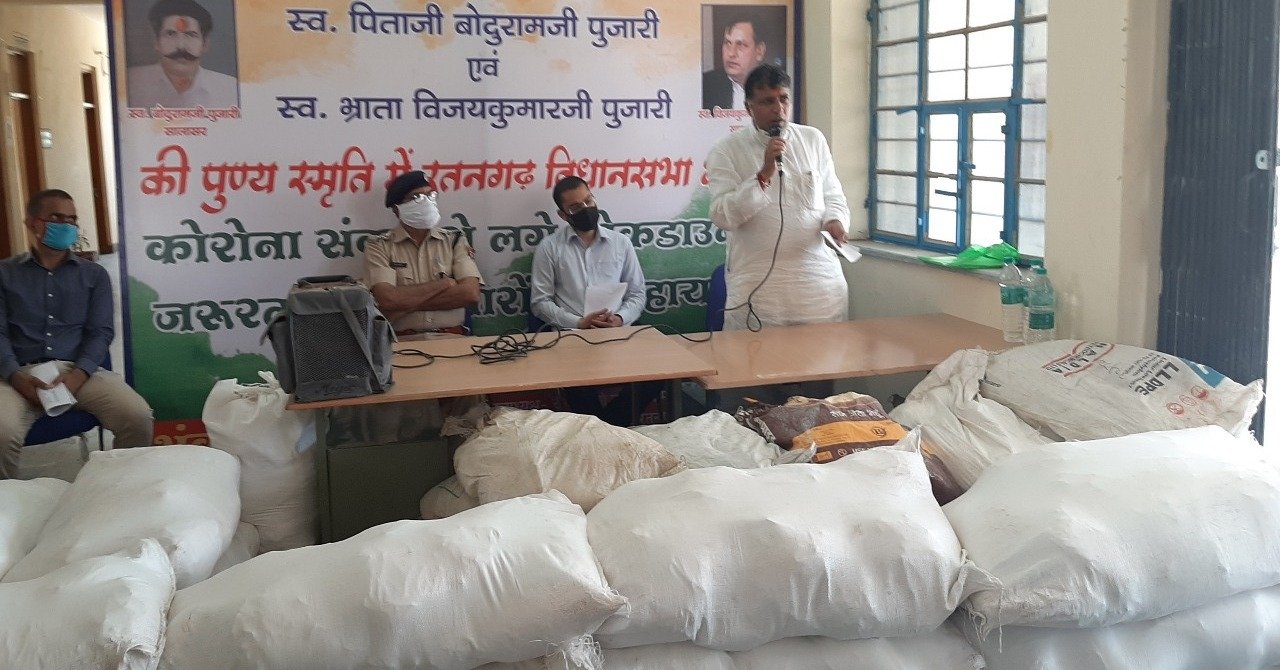 राजलदेसर,(कुंदन दाधीच)9 मई। कांग्रेस जिलाध्यक्ष भंवरलाल पुजारी ने कहा है कि कोरोना वैश्विक महामारी के चलते चल रहे लोकडाउन के तहत केन्द्र व राज्य सरकार द्वारा जारी दिशा-निर्देशों की पालना करें तथा आत्मविश्वास बनाएं रखे । पुजारी शनिवार को उप-तहसील कार्यालय में अपने पिता बोदूराम पुजारी व भ्राता विजय कुमार पुजारी की स्मृति में जरूरतमदों के लिए प्रशासन को राशन सामग्री किट उपलब्ध करवाने से पूर्व आयोजित कार्यक्रम को संबोधित कर रहे थे। पुजारी ने 725 राशन किट एसडीएम डॉ गौरव सैनी, डीएसपी प्यारेलाल मीणा, एसएचओं सुरेन्द्र राणा की उपस्थिति में नायब तहसीलदार सुभाष कुल्हरी को जरूरतमंदों को वितरित करने के लिए सौंपे। उन्होंने कहा कि आगे भी आवश्यकतानुसार राशन सामग्री उपलब्ध करवाई जाती रहेगी। राशन से किसी भी जरूरतमंद को वंचित नहीं रहने दिया जाएगा। पुजारी ने कहा कि यह कोई दान नहीं है, जरूरतमंद का सहयोग है। इस मौके पर कांग्रेस नगर प्रभारी गोविन्दसिंह कठौड़, खेमचंद बरडिया, हंसराज पारीक, सतीश मारू, कन्हैयालाल सैनी, पीसीसी सदस्य कल्याणसिंह शेखावत, रोहित मारू, रामनारायण, राजेन्द्र बबेरवाल आदि मौजूद थे ।