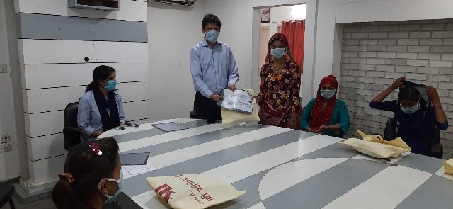 श्री सीमेन्ट सी एस आर केन्द्र पर मास्क बनाने वाली महिलाओं को पारितोषिक का वितरण