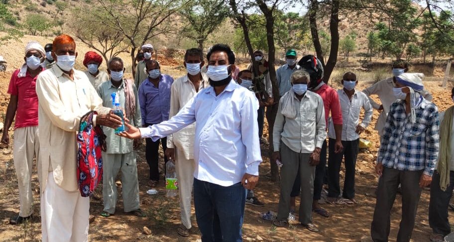 खेतड़ी,(जयंत खाँखरा)15 मई। कोरोना वायरस के चलते नानूवाली बावड़ी के समाजसेवी संजय कुमार सैनी सामाजिक सरोकार निभा रहे हैं। शुक्रवार को उन्होंने नरेगा कर्मियों को मास्क व सैनिटाइजर भेंट किए व उनको जलपान करवाया। साथ ही उन्होंने मजदूरों को सोशल डिस्टेंसिंग व कोरोना संक्रमण के बचाव के बारे में विस्तृत जानकारी दी।