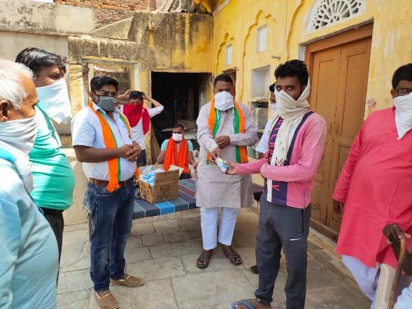भाजपा की ओर से मास्क और सैनिटाइजर का वितरण