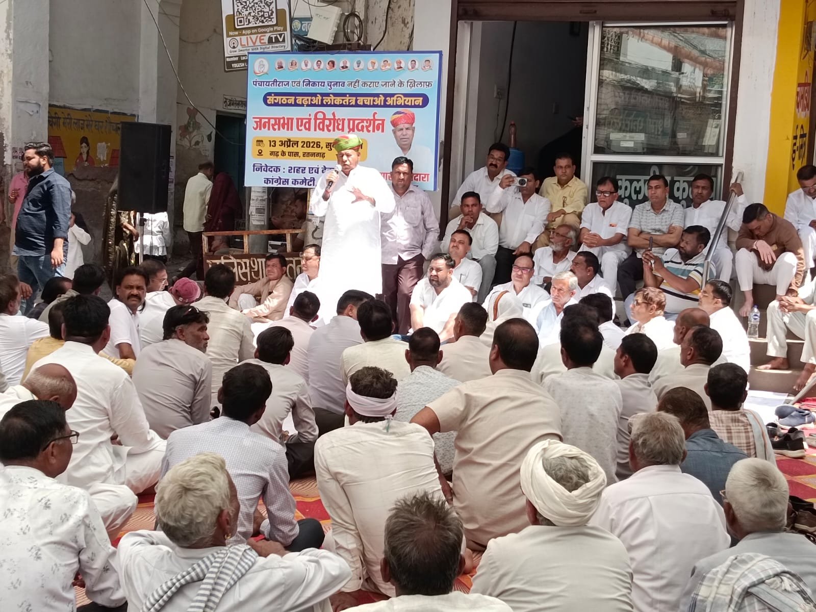 विधायक ने उपस्थित जनसमूह से आह्वान किया कि वे लोकतंत्र की रक्षा के लिए संगठित होकर अपनी आवाज बुलंद करें। इस अवसर पर विधानसा प्रभारी सुनील महला ने कहा कि संगठन को मजबूत करके भाजपा की जनविरोधी नीतियों का विरोध करते संघर्ष को जारी रखा जाएगा। इस दौरान पूर्व प्रधान गिरधारी लाल बांगड़वा, शहर ब्लॉक अध्यक्ष राजकुमार चाकलान, अरविंद चाकलान, देहात ब्लॉक अध्यक्ष भानीराम मेघवाल, हेमंत सारस्वत, कल्याण सिंह शेखावत, पूर्व उप प्रधान रत्न लाल मेघवाल, सुरेंद्र सिंह गोलसर, भंवर जसेल, केशर सिंह राठौड़, रामवीर राईका, मुख्तयार खान, निरंजन तामडायत सहित विभिन्न वक्ताओं ने भी अपने विचार व्यक्त करते हुए सरकार से शीघ्र चुनाव कराने की मांग की। कार्यक्रम में रमेश चंद्र इंदौरिया, त्रिम्बयक वैध, तिलोक बिस्सू, डूंगर राम, मांगीलाल खीचड़, अनिल पारीक, गोविंद पंवार, प्रियंका देवी महासचिव, माणकचन्द तदेवाल, हीराराम नैन, ओमप्रकाश भार्गव, सुरेंद्र हुड्डा, इलियास खान, जब्बार खोखर, गन्नी मोहम्मद, कानाराम नाई, राकेश महरिया , नेमीचंद खटीक, जगदीश खटीक, महावीर सिंह राठौड़ एडवोकेट, माणकचन्द मेघवाल, मेघाराम कांटीवाल, देवीलाल सांखला, हनुमान बीडासरा , जगदीश मेघवाल, नानू सिंह, महेंद्र सैनी, राजकुमार बबेरवाल,विजय सैनी, दलीप सिहाग, मनफूल टांडी, नेमाराम मेघवाल, पन्ने सिंह, सहित बड़ी संख्या में पदाधिकारी कांग्रेस कार्यकर्ता एवं आमजन उपस्थित रहे।