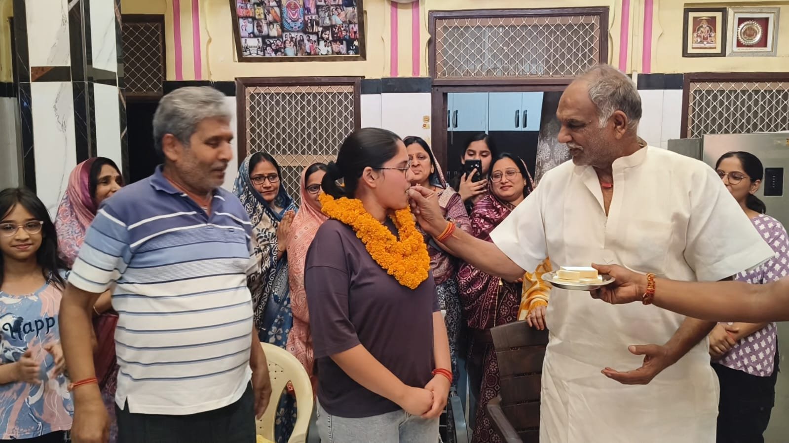मोक्षा की सफलता की खबर जैसे ही चिड़ावा पहुंची, उनके घर पर बधाई देने वालों का तांता लग गया।