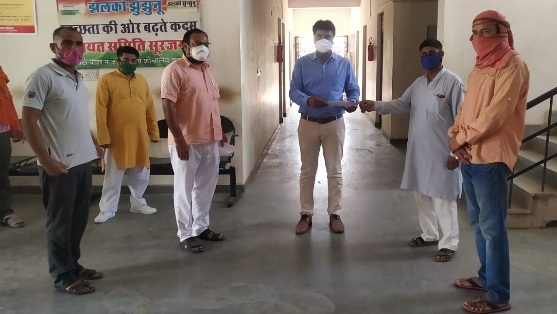 सूरजगढ़,(कृष्ण कुमार गांधी)12 मई। कोरोना महामारी के दौरान जनहित के कामों में विफल रही कांग्रेस सरकार के विरोध में मंगलवार को भाजपा ने राज्यपाल के नाम ज्ञापन नायब तहसीलदार को सौंपा। भारतीय जनता पार्टी के जिला महामंत्री विकास शर्मा, सूरजगढ़ शहर मंडल अध्यक्ष संजय गोयल के नेतृत्व में उपाध्यक्ष सुनील पालीवाल, युवा मोर्चा अध्यक्ष संदीप शर्मा, पार्षद राकेश नांदवाला, पूर्व महामंत्री संतोष कुमावत, पूर्व सहवृत सदस्य राजेंद्र सोंकरीया, आईटी सेल मोहित जोशी, संजय चोटिया, गोपाल सेन समेत कार्यकर्ताओं ने कोरोना संक्रमण काल से उत्पन्न स्थिति तथा जन हित के अन्य विषयों में विफल रही राज्य सरकार के विरोध में राज्यपाल के नाम नायब तहसीलदार को ज्ञापन सौंपा।