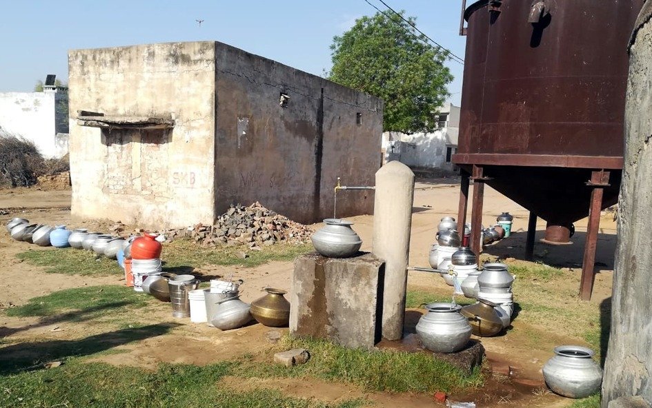 सादुलपुर,(राजेश राजपूत)21 मई। बैरासर गांव में गर्मी बढऩे के साथ ही पेयजल संकट खड़ा होने लगा है तथा अल सुबह ही पानी के इंतजार में पेयजल टंकियों के पास मटकों की कतार लग जाती है। ग्रामीणों ने बताया कि आपणी योजनान्तर्गत पानी की सप्लाई पर्याप्त नहीं हो पा रही है। जिसके कारण ग्रामीणों को परेशानी उठानी पड़ रही है। शिकायतों के बाद भी कोई कार्रवाई नहीं हो रही है। ग्रामीणों ने रोष जताते हुए कहा कि अधिकारी संतोषजनक जवाब नहीं देते हैं तथा जनप्रतिनिधि भी मौन व्रत धारण किए हुए हैं। आमजन की समस्या को कोई सुनने वाला नहीं है। गांव के ही प्रदीप ने बताया कि आपणी योजना पानी सप्लाई के लिए बनाई बड़ी टंकी जो मिठड़ी गांव में है जो क्षतिग्रस्त हालत में है तथा पाइप लाइनों के चैम्बर भी खुले पड़े हैं। जिसमें पक्षियों के शव भी देखे जा सकते हैं। ग्रामीणों ने समय रहते कार्रवाई नहीं होने पर आंदोलनात्मक कदम उठाने की चेतावनी दी है।