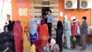बैंक के आगे लगी लाईन ने नहीं बनाई सोशल डिस्टेसिंग