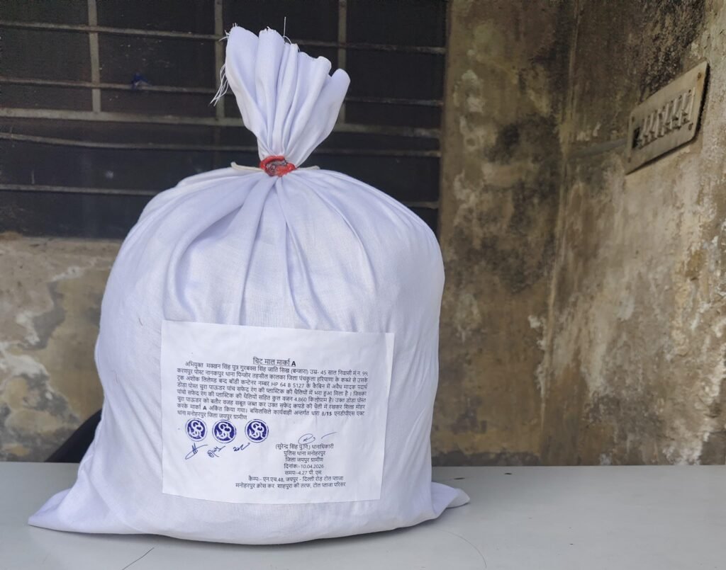 पुलिस द्वारा वैध लाइसेंस या दस्तावेज मांगे जाने पर चालक कोई संतोषजनक जवाब नहीं दे पाया। जब्त डोडा चूरा का कुल वजन 4.860 किलोग्राम पाया गया।