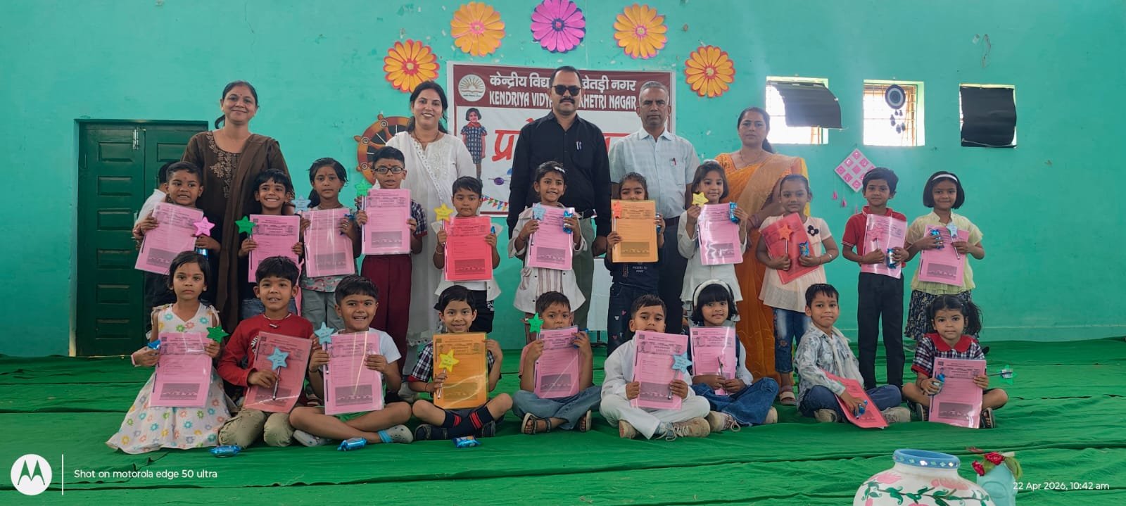केंद्रीय विद्यालय स्कूल में प्रथम कक्षा के बच्चों का प्रवेश उत्सव मनाया गया। कार्यक्रम की अध्यक्षता उम्मेद अली ने की।कार्यक्रम का शुभारंभ मां सरस्वती की प्रतिमा के समक्ष दीप प्रज्वलित कर किया। इस अवसर पर कक्षा प्रथम के नव प्रवेशित बच्चों का तिलक लगाकर एवं स्वागत गान के द्वारा स्वागत किया गया। संगीत शिक्षिका डॉ डॉली भारती के निर्देशन में विद्यालय के बच्चों ने रंगा रंग सांस्कृतिक कार्यक्रमों की प्रस्तुति दी। उम्मेद अली ने अभिभावकों से आह्वान किया कि बच्चों की शिक्षा में अध्यापक और अभिभावकों दोनों को बराबर की भूमिका निभानी चाहिए। साथ ही बच्चों के सर्वांगीण विकास हेतु विद्यालय में उपलब्ध सुविधाओं की जानकारी दी। प्रधानाध्यापक मनोज कुमार वर्मा ने अभिभावकों को स्कूल ड्रेस, फीस, नियमित उपस्थिति, पुस्तकों, परीक्षा प्रणाली, अनुशासन एवं विद्याप्रवेश कार्यक्रम इत्यादि के बारे में जानकारी दी। संचालन आरती कुमारी ने किया। इस मौके पर कृष्ण कुमावत, ललिता मीणा, प्रकाश सोनी सहित स्कूल स्टॉफ, बच्चें एवं अभिभावक मौजूद थे।