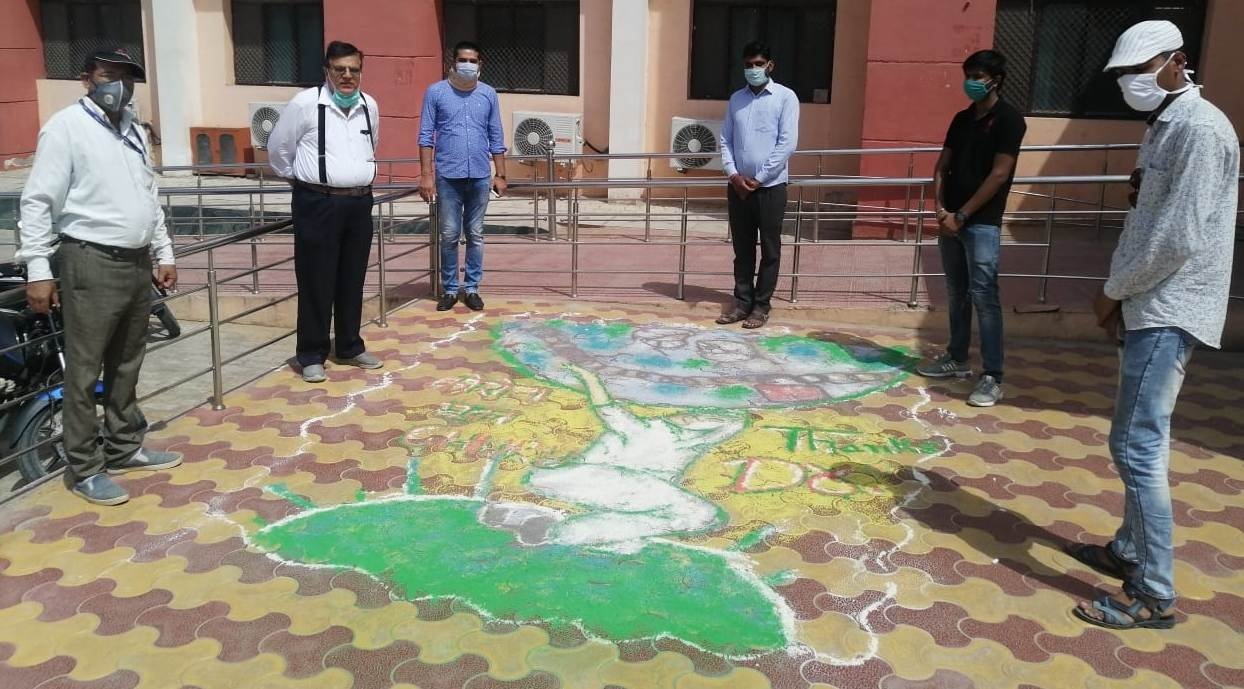 रंगोली सजा जताया कोरोना वॉरियर्स डॉक्टर्स का आभार