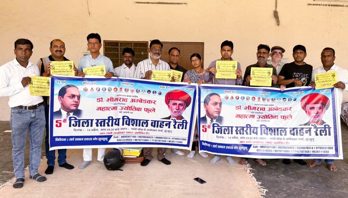 इस दौरान समाज के गणमान्य लोगों ने एकजुट होकर 14 अप्रैल बाबा साहेब की जयंती पर वाहन रैली को ऐतिहासिक बनाने का संकल्प लिया। सुभाष डीग्रवाल ने बताया की रैली 14 अप्रैल को गाँधी चौक झुन्झुनू से शाम 4 बजे से रवाना होकर शहर के मुख्ये मार्ग होते हुए अंबेडकर पार्क पहुचेगी।