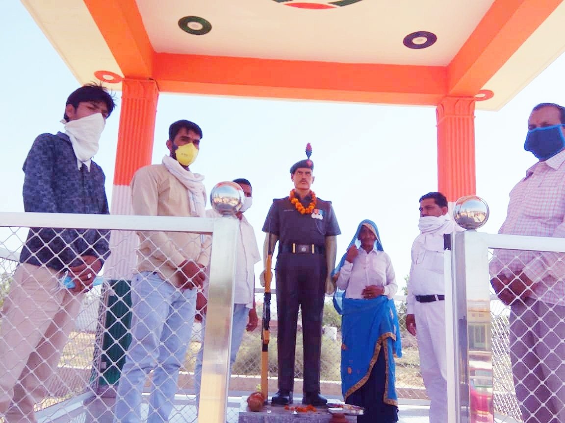 बुहाना,(सुरेन्द्र डैला)22 मई। तहसील के थली गांव में शहीद रामजीलाल गुर्जर की पुण्यतिथि मनाई गई। इस अवसर पर करणी सेना के जिला अध्यक्ष गिरवर सिंह तंवर, बुहाना उपप्रधान राजपाल सिंह तंवर, महक सिंह, हिमांशु गोयल आदि ने शहीद रामजीलाल की प्रतिमा पर फूल चढ़ाकर उन्हें श्रद्धांजलि दी गई। तंवर ने कहा कि शहीद हमारे राष्ट्र के गौरव हैं और उनके जीवन से हमें राष्ट्रभक्ति की प्रेरणा मिलती है। उप-प्रधान ने कहा कि हम सब भारतवासियों को शहीदों की जयंती और पुण्यतिथि मनानी चाहिए। आज हम अपने घरों में सुरक्षित हैं तो हमारे वीर सैनिक जवानों के कारण ही हैं जो सरहदों पर हमारे देश की दिन-रात अपनी जान की परवाह नहीं करते हुए रक्षा कर रहे है।