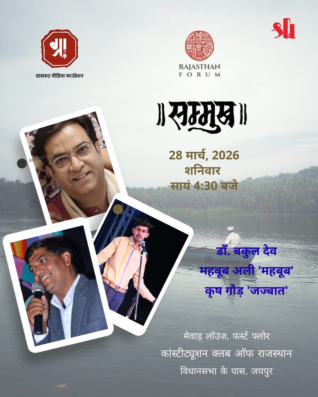 जयपुर (नवयत्न)। गुलाबी नगरी के साहित्यिक गलियारों में एक बार फिर कविता—ग़ज़ल की गूँज सुनाई देगी। आगामी 28 मार्च (शनिवार) को कांस्टीट्यूशन क्लब ऑफ राजस्थान जयपुर में काव्य समारोह ‘सम्मुख’ का आयोजन किया जा रहा है।