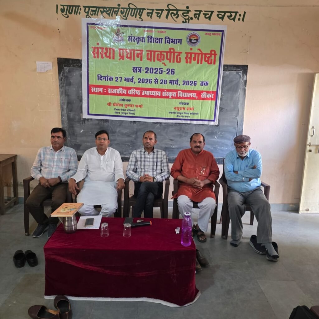 सीकर (नवयत्न)। राजकीय वरिष्ठ उपाध्याय संस्कृत विद्यालय, सीकर में दो दिवसीय संस्कृत शिक्षा विभागीय संस्था प्रधानों की वाक्पीठ संगोष्ठी का आयोजन किया गया। इस संगोष्ठी का उद्घाटन जिला नोडल अधिकारी संस्कृत शिक्षा योगेश कुमार शर्मा ने किया।