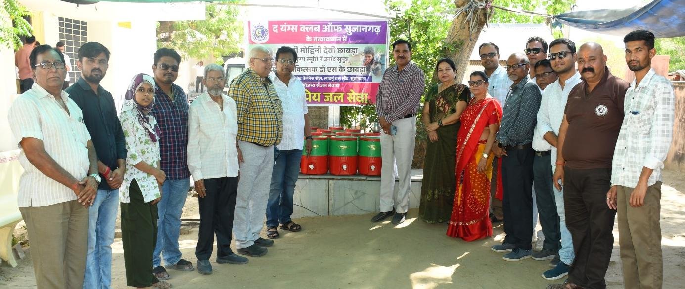सुजानगढ़ (नवयत्न) । द यंग्स क्लब ऑफ सुजानगढ़ द्वारा भीषण ग्रीष्म ऋतु को देखते हुए शीतल पेय जल सेवा प्रकल्प के तहत क्लब अध्यक्ष निर्मल भूतोडिया एवं सांस्कृतिक सचिव गिरधर शर्मा की प्रेरणा द्वारा द्वितीय चरण में नगर के चार स्थानों पर निशुल्क पेयजल सेवा आज शुरू की गई। तहसील कार्यालय के समक्ष मुख्य अतिथि तहसीलदार गिरधारी लाल पारीक ने इस पुनीत मुहिम का उद्घाटन किया। अपने सम्बोधन में उन्होंने बताया कि राहगीरों एवं आम जनता के लिए शीतल जल उपलब्ध करवाना पुण्य का कार्य है। अपने अनुभव साझा करते हुए उन्होंने पक्षियों के लिए दाना-पानी की व्यवस्था व्यक्तिगत स्तर पर करने का आह्वान किया। भामाशाह व चिकित्सक डॉ सरोज छाबड़ा की अध्यक्षता में आयोजित कार्यक्रम में क्लब संस्थापक अध्यक्ष दानमल भोजक ने कार्यक्रम की पृष्ठभूमि के बारे में जानकारी देते हुए बताया कि आज चार जल पॉइंट में तहसील कार्यालय के सामने मोहिनी देवी छाबड़ा की स्मृति में उनके पुत्र डॉ सरोज छाबड़ा के सौजन्य से, देवसागर सिंघी जैन मंदिर ट्रस्ट के द्वारा सिंघी मंदिर के पीछे मनु देवी सुराणा की स्मृति में झंकार नवरत्नमल सुराणा ट्रस्ट, कोलकाता के सहयोग से, पंचायत समिति के सामने श्रीमती कौशल्या प्रकाशचंद्र गुलेरिया के सौजन्य से ठरड़ा के शिवालय पर उक्त पेय जल व्यवस्था शुरू की गई है। इस अवसर पर अति. प्रशासनिक अधिकारी ओमप्रकाश बंजारा, हेमराज नाहटा, अभिलाष छाबड़ा, स्नेहप्रभा मिश्रा, कौशल्या गुलेरिया, हाजी मोहम्मद, योगेंद्र भोजक, अमित शर्मा, अंकित चोटिया, प्रतीक चोटिया, काशिफा, हरिओम, संदीप पारीक, रूपचंद स्वामी आदि मौजूद रहे। सभी ने क्लब के इस सेवा कार्य की मुक्त कंठ से सराहना की।