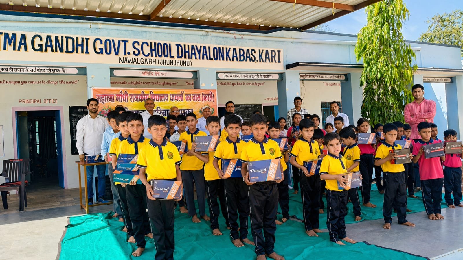 बुगाला (नवयत्न) । निकटवर्ती धायलों का बास स्थित महात्मा गांधी राजकीय विद्यालय में मंगलवार को भामाशाहों के आर्थिक सहयोग से विद्यार्थियों को जूते वितरित किए गए। इस अवसर पर संस्था प्रधान सुमन कुमारी धायल ने बताया कि विद्यालय परिवार विद्यार्थियों के सर्वांगीण विकास एवं उनकी मूलभूत आवश्यकताओं की पूर्ति के लिए निरंतर प्रयासरत है। इससे पहले विद्यालय स्टाफ द्वारा सभी विद्यार्थियों को टी-शर्ट एवं लोअर सेट भी भेंट किए जा चुके हैं।इस मौके पर कैप्टन धूड़सिंह धायल, मूलचंद धायल, बलबीर धायल, चंदगीराम धायल, हेतराम मांठ, शीशराम, महेश कुमार, रवि प्रकाश, राधेश्याम, संजय कुमार एवं सुनील कुमार सहित अनेक लोग उपस्थित रहे।अतिथियों ने इस पहल की सराहना करते हुए इसे समाज और शिक्षा के बीच मजबूत समन्वय का उत्कृष्ट उदाहरण बताया तथा भविष्य में भी विद्यालय को हरसंभव सहयोग देने का आश्वासन दिया।विद्यालय परिवार की ओर से भामाशाहों एवं सहयोगियों के प्रति आभार व्यक्त किया गया।