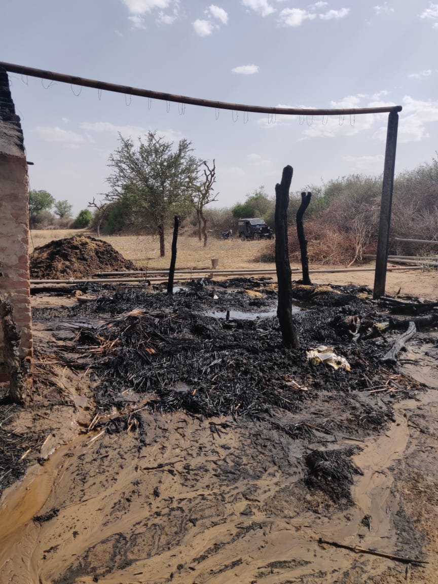 सादुलपुर,(राजेश राजपूत)18 मई। गांव सुलखणिया छोटा में बिजली शॉर्ट सर्किट के कारण खेत में बने एक कच्चे मकान में आग लग गई। जिसके कारण घरेलू सामान जलकर राख हो गया तथा पशुधन झुलस कर घायल हो गए। गांव के ही विनोद कुमार ने बताया कि नवीन महला के कच्चे मकान में आग लग जाने के कारण सरसों एवं घरेलू सामान जलकर राख हो गया तथा एक गाय व दो भैंसें झुलस गई। ग्रामीणों ने पानी एवं मिट्टी डालकर आग पर काबू पाया।