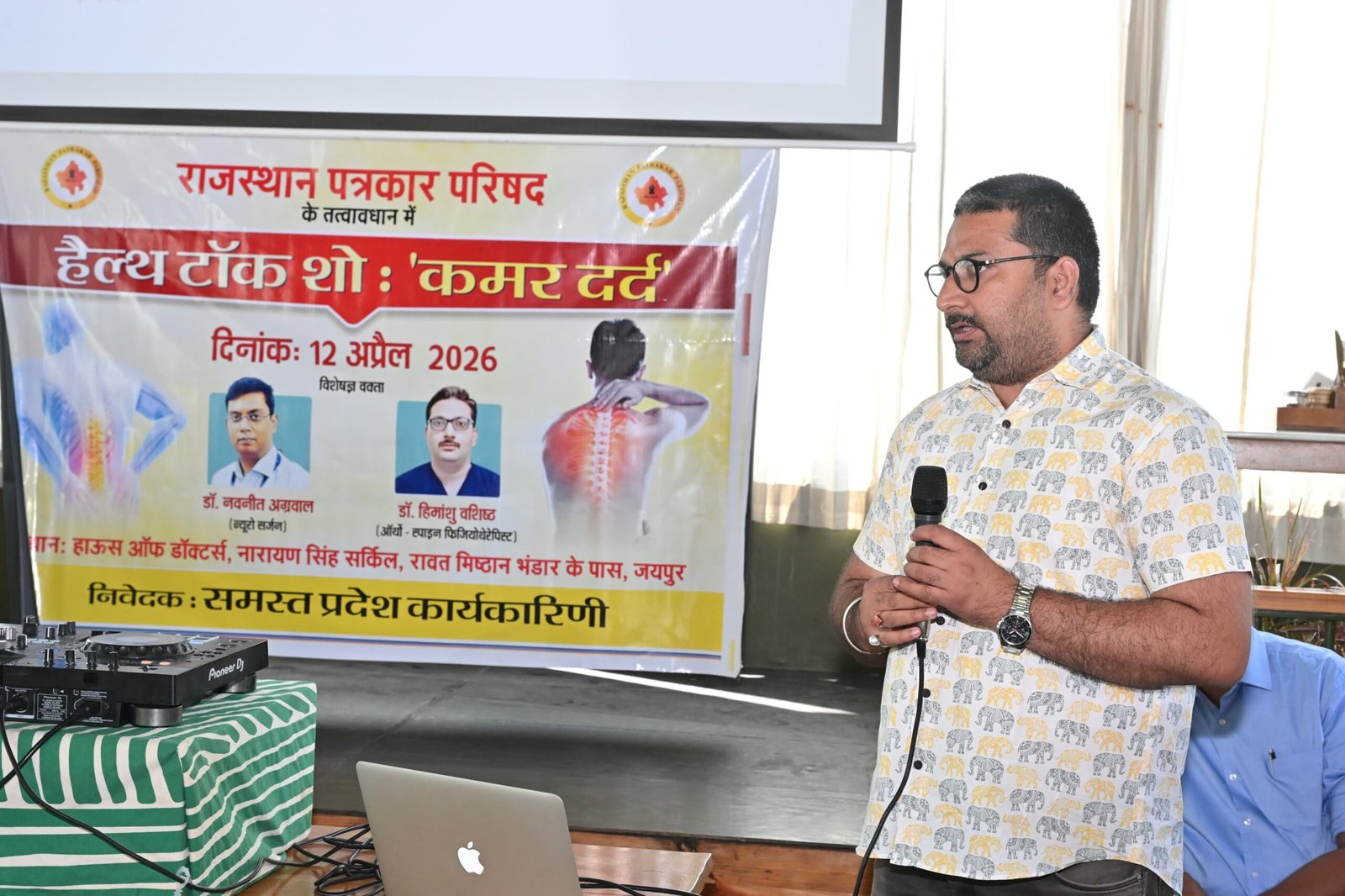 जयपुर (नवयत्न)। रविवार को राजस्थान पत्रकार परिषद के तत्वावधान में पत्रकारों के लिए “कमर दर्द” विषय पर एक विशेष हेल्थ टॉक शो का आयोजन किया गया। कार्यक्रम का आयोजन नारायण सर्किल के पास स्थित डॉक्टर क्वार्टर के कंपाउंड में हुआ, जिसमें बड़ी संख्या में पत्रकारों ने भाग लिया।