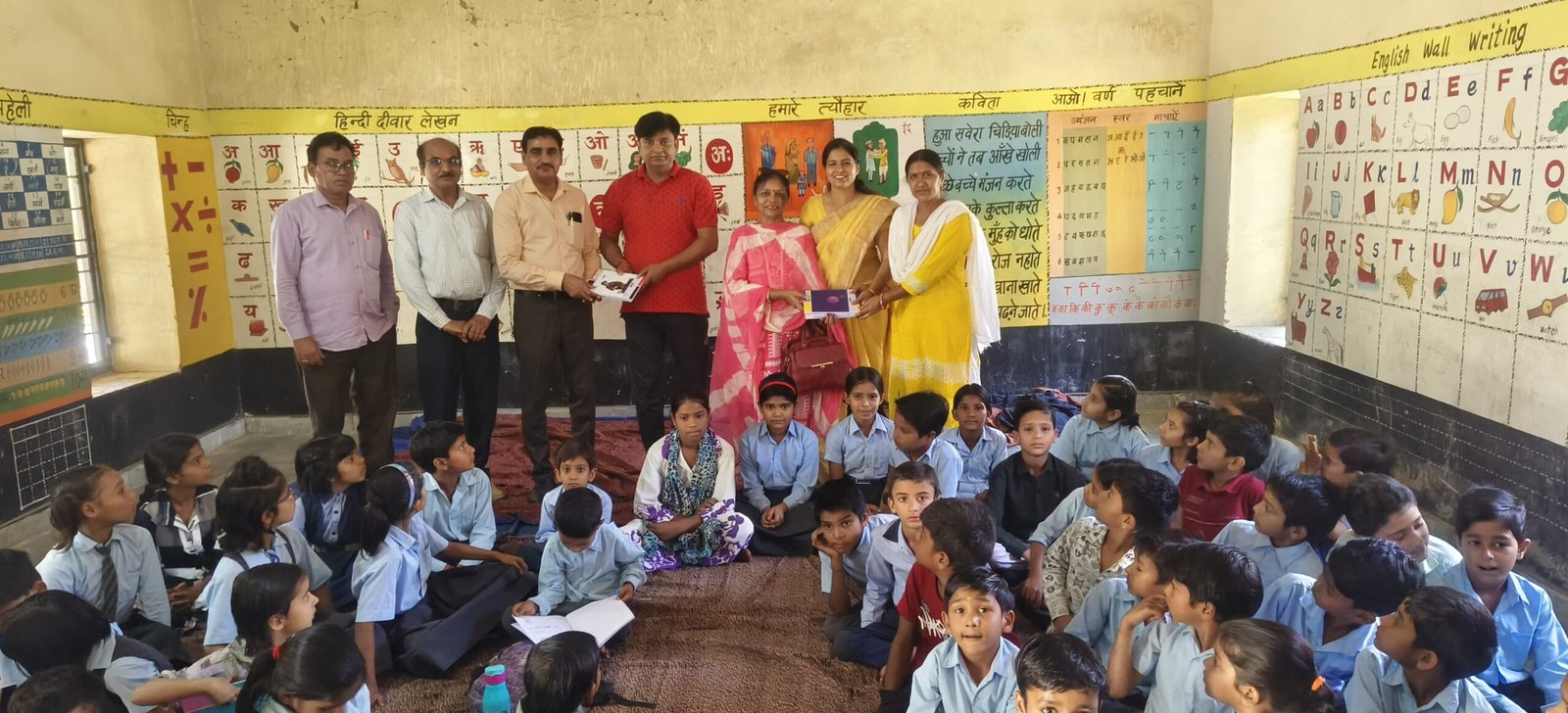 स्कूल में विद्यार्थियों को बांटी पाठ्य सामग्री
