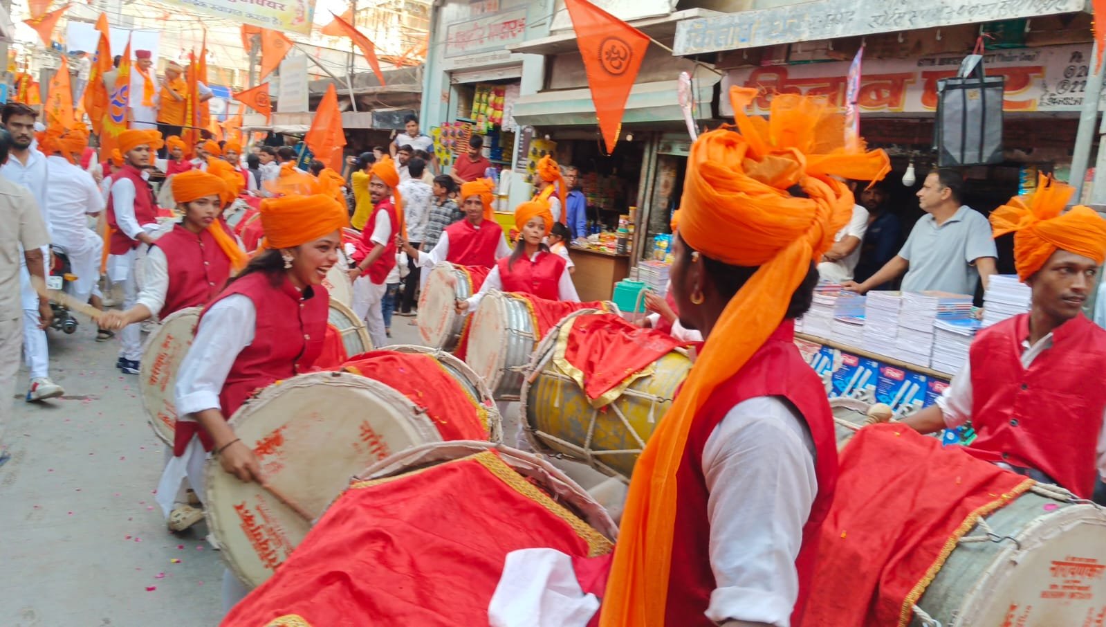 सुजानगढ़ (नवयत्न)। श्रीरामोत्सव को लेकर भव्य शोभायात्रा का आयोजन किया गया, जिसमें हजारों की संख्या में लोगों ने भगवा ध्वज के साथ भाग लिया। गणेश मंदिर से शुरू हुई शोभायात्रा में भारत माता, राम दरबार, महाराणा प्रताप सहित अनेक झांकिया सजाई गई। वहीं ताराचंद तंवर, पुटिया राजा, यूपी से भाजपा नेता परमेश्वर सैनी, नोपाराम मंडा, हेमंतसिंह आदि कारों पर सवार चल रहे थे। लाव लश्कर व उंट घोड़ों के बीच बैंड बाजों पर हरीकीर्तन व भजनों पर श्रद्धालु झूमते नजर आए। दूसरी ओर महाराष्ट्र से आई ढ़ोल वादक टीम ने सभी लोगों का ध्यान अपनी ओर आकर्षित किया। मुख्य बाजारों में इस टीम की प्रस्तुति देखनें के लिए लोगों की भीड़ उमड़ी। एडीशनल एसपी दिनेश कुमार के नेतृत्व में पर्याप्त संख्या में पुलिस जाप्ता भी रैली के दौरान मौजूद रहा। दूसरी ओर रैली में भाजपा नेता कमल दाधीच, हिमांशु भाटी, बसंत दाधीच सहित बड़ी संख्या में लोग शामिल हुए। शोभायात्रा शहर के लाडनू बस स्टेंड, घंटाघर चौक, स्टेशन रोड़ होते हुए नलिया बास तक पहुंची। जगह जगह रैली का पुष्पवर्षा कर स्वागत किया गया और स्वागत द्वार बनाये गये। वहीं जगह-जगह पर आकर्षक रंगोलियां भी बनाई गई। शोभायात्रा से शहर का माहौल भगवामय हो गया।