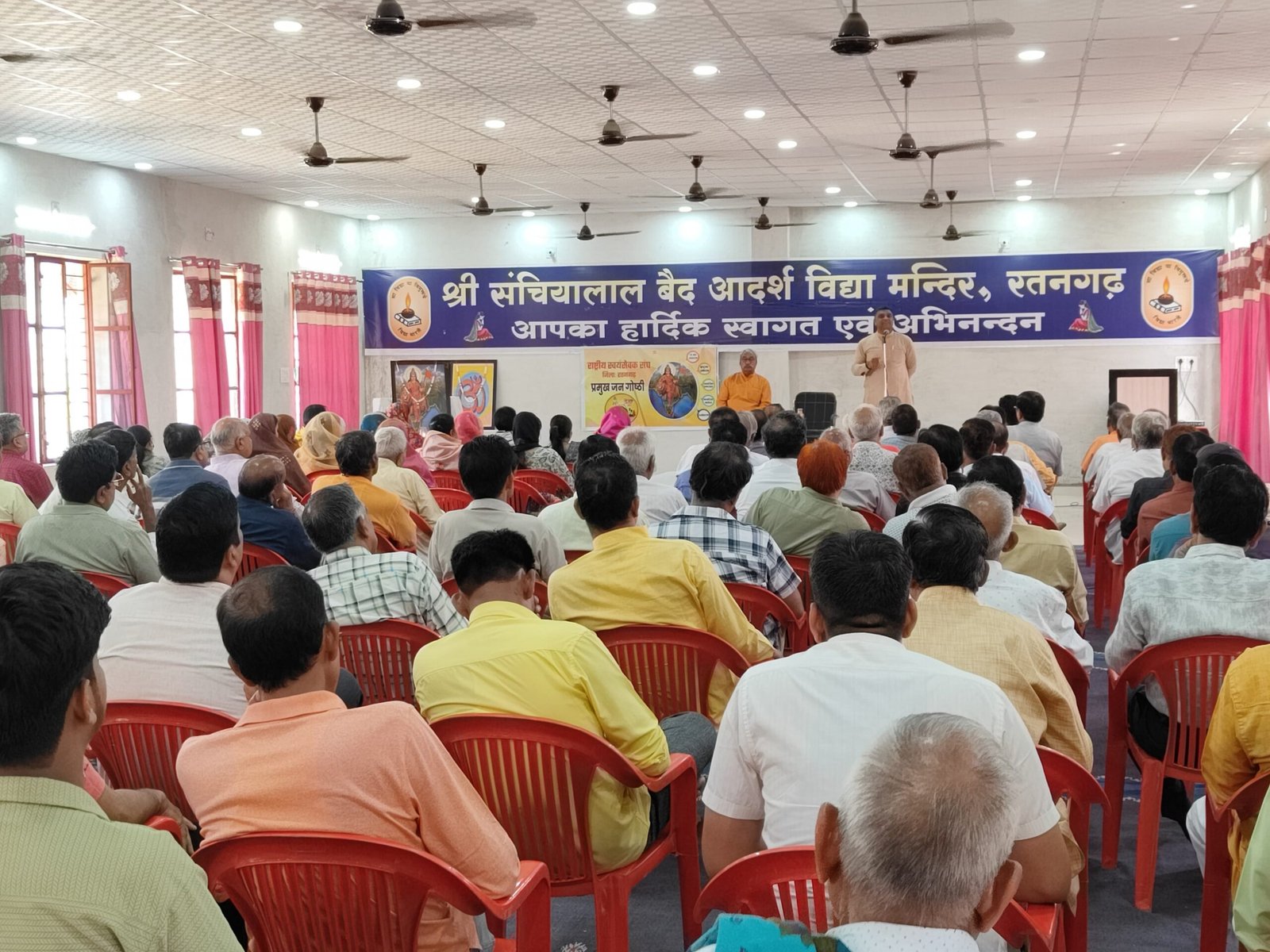रतनगढ़ (नवयत्न)। रतनगढ़ की श्री संचियालाल बैद माध्यमिक आदर्श विद्या मंदिर के सभागार में राष्ट्रीय स्वयंसेवक संघ द्वारा प्रमुख जन गोष्ठी का आयोजन किया गया। कार्यक्रम में विद्या भारती राजस्थान के क्षेत्रीय संगठन मंत्री गोविन्द प्रसाद मुख्य वक्ता के रूप में तथा खण्ड संघ चालक ,धनराज सेन मंचस्थ अतिथि के रूप में उपस्थित रहे। गोष्ठी में राष्ट्रीय स्वयंसेवक संघ के शताब्दी वर्ष के उपलक्ष्य में संघ की स्थापना, समाज को दिशा देने हेतु किये जा रहे कार्यों, राष्ट्र निर्माण के संदर्भ में उद्देश्यों एवं चरित्र निर्माण सम्बंधी विषयों पर चर्चा की गई। क्षेत्रीय संगठन मंत्री ने कहा कि – ‘राष्ट्रीय स्वयंसेवक संघ का मूल उद्देश्य उत्तम चरित्र के जिम्मेदार व्यक्तित्व तैयार करना है जो कि भारतवर्ष के चहुंमुखी विकास में भागीदारी निभा सके। इस अवसर पर नगर के विभिन्न वर्गों में विशिष्ट सेवा एवं प्रभुत्व रखने वाले गणमान्य नागरिक उपस्थित रहे। कार्यक्रम का संचालन कृपाशंकर स्वामी ने किया।