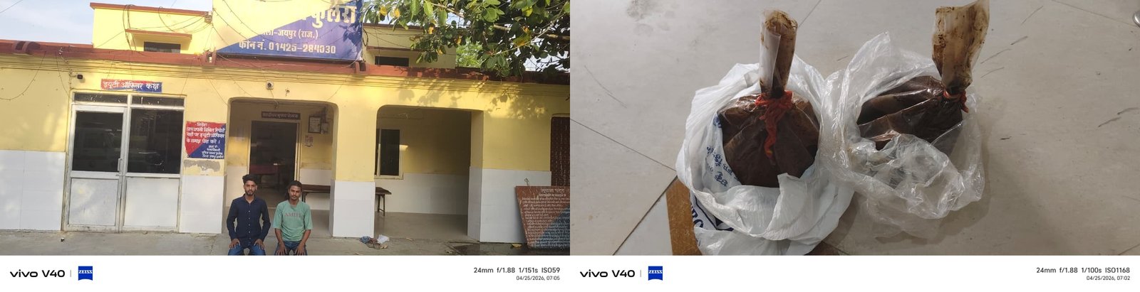 जयपुर ग्रामीण एसपी हनुमान प्रसाद ने बताया कि रेंज आईजी राहुल प्रकाश के निर्देशानुसार 1 से 30 अप्रैल तक नशा तस्करों के खिलाफ विशेष अभियान चलाया जा रहा है। इसी क्रम में शुक्रवार रात करीब 11 बजे थानाधिकारी राजेन्द्र कुमार मय टीम गांधी चौक पर गश्त कर रहे थे। इस दौरान सामने से आ रहे दो युवक पुलिस को देखकर घबरा गए और वापस भागने लगे। संदेह होने पर पुलिस ने घेराबंदी कर दोनों को डिटेन कर लिया।