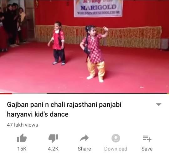 शहर के मैरीगोल्ड वल्र्ड सीनियर सैकंडरी स्कूल में दिसंबर 2019 में सांस्कृतिक प्रतियोगिता कार्यक्रम सतरंग फेस्ट का आयोजन किया गया। कार्यक्रम में स्कूल की नन्ही छात्रा प्रतिभा नगर निवासी लाव्या शर्मा ने भी हरियाणवी गीत ‘गजबण पाणी नै चाली’ पर युगल नृत्य की प्रस्तुति दी थी। लाव्या के इस गीत को स्कूल प्रबंधक शिक्षासेवी अभिषेक चोटिया ने छह जनवरी को यू-ट्यूब पर अपलोड कर दिया। उसके बाद इस डांस वीडियो को रातों-रात करीब एक लाख लोगों ने देख और लाव्या यू-ट्यूब स्टार बन गई। बाद में फेसबुक पेज हरियाणा बोल पर इसे शेयर किया गया तो वहां भी दर्शकों ने इसे खूब पसंद किया।
