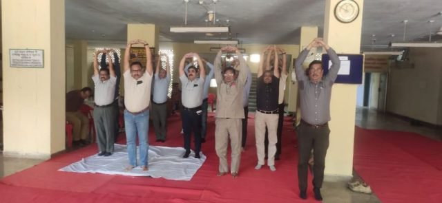 उन्होंने कहा कि योग मानसिक और शारीरिक स्वास्थ दोनों को बेहतर बनाता है। कार्यक्रम आयोजक मुन्नालाल जैदिया ने कार्यक्रम की रूपरेखा पर प्रकाश डाला। योग गुरू प्रेमप्रकाश सैनी ने योग से होने वाले फायदों के बारे में विस्तार से बताया। इस मौके पर अमरसिंह भालोठिया, डा. गोपाल राठी, वनेंदु भंडारी, राजेश डांढेल, नागेश राजपूरोहित, वीके इंद्रा, अक्षत यादव, एसएम अली, महेंद्र शर्मा, रजनिश सिंगड, सरजीत दईया, राजकुमार बाडेटिया, आनंदसिंह शेखावत, वीबी गुप्ता, पार्वती देवी, सुशील कुमार, विनायक साहू, अश्वनी गुरावड़िया, नरेंद्र गोस्वामी सहित अधिकारी व कर्मचारियों ने योग अभ्यास में भाग लिया।